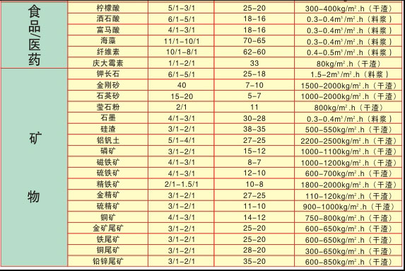 DU型橡胶带式真空过滤机典型应用实例表