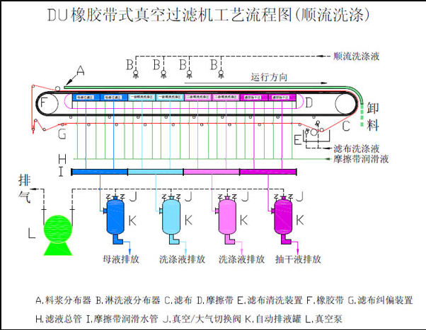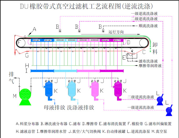 DU型橡胶带式真空过滤机基本工艺: